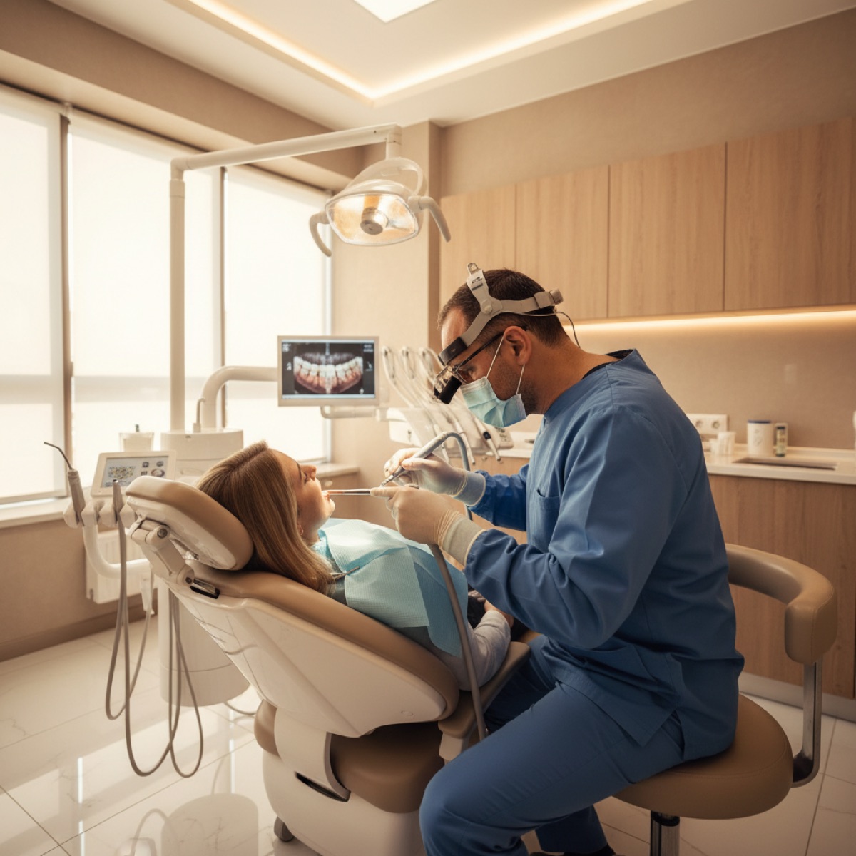 Современный дентальный имплантат — это небольшой титановый винт, который прочно устанавливается в кость челюсти, замещая корень зуба. Во внутреннюю часть импланта вставляется абатмент — соединительный элемент, на который крепится несъёмная коронка, мостовидный протез или специальный гибридный протез.