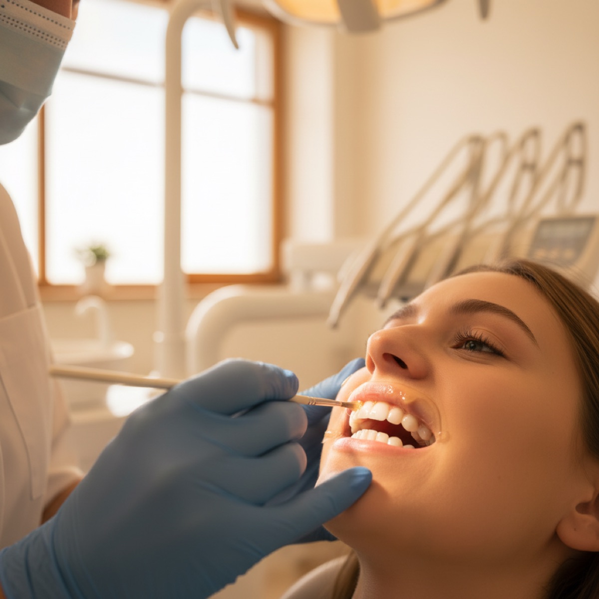 Флюороз — поражение эмали при избытке фтора в период формирования зубов. Проявляется белыми или коричневыми пятнами и полосами на поверхности.